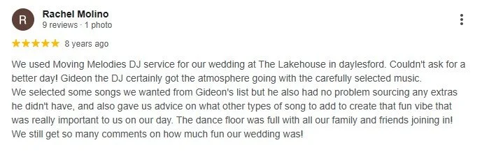 You’re obviously a natural at what you do, being a people's person as you are, you know exactly how to please and keep things under control. We have recommended your DJ service to many friends and family. "
